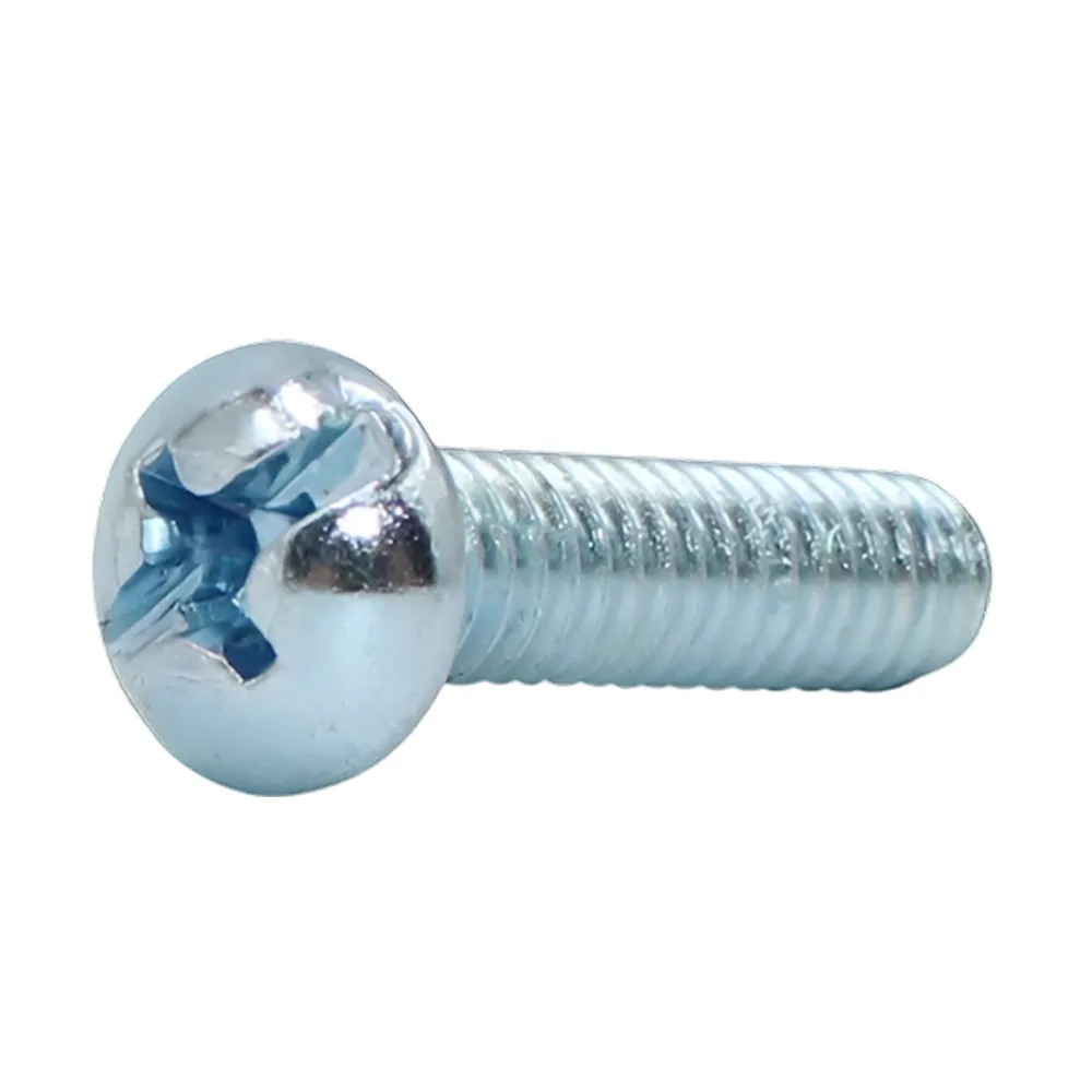 Fabricado en acero de bajo carbono con acabado zincado, modelo cabeza pan, cuenta con encastre cabeza estrella, con ranura en forma de cruz que minimiza la posibilidad de que el destornillador se deslice, cuerpo de rosca de hilo corriente.