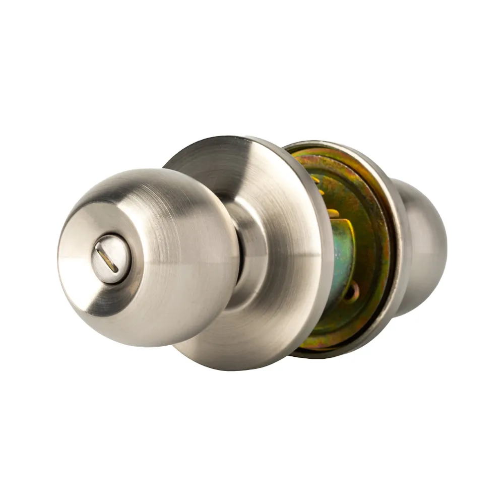 Dale un toque moderno y elegante a tu baño con la Cerradura de Pomo Carolina para Baño Acero Inoxidable Yale.