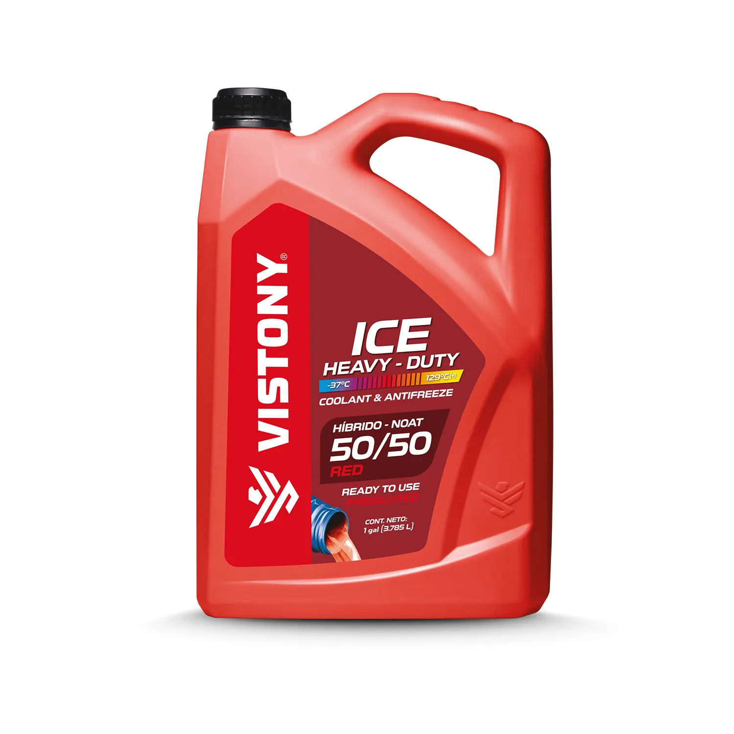ICE FREEZE HEAVY DUTY HYBRID (NOAT) 50-50 EXTENDED LIFE es un refrigerante anticongelante premezclado al 50% para motores diésel de servicio pesado. Utiliza tecnología NOAT (Organic Acid Technology with Nitrite) con aditivos antioxidantes para inhibir la corrosión de metales y prevenir la erosión por cavitación. Su formulación orgánica de larga duración no requiere aditivos suplementarios (SCA).